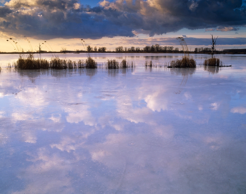 TEICH MIT DÜNNER EISSCHICHT, Nationalpark Fertö-Hánsag, Ungarn |